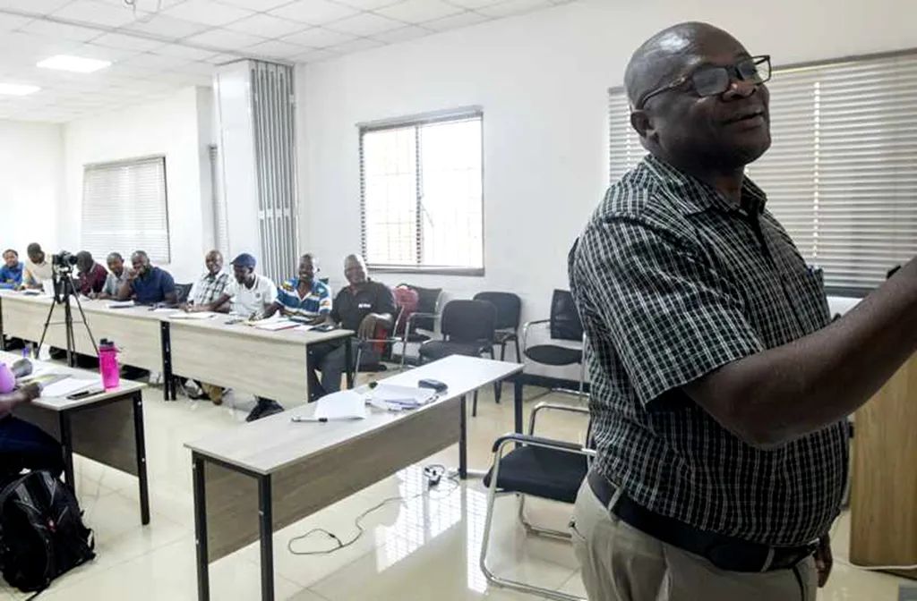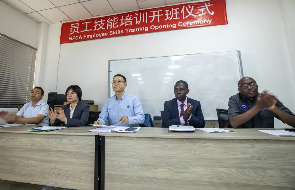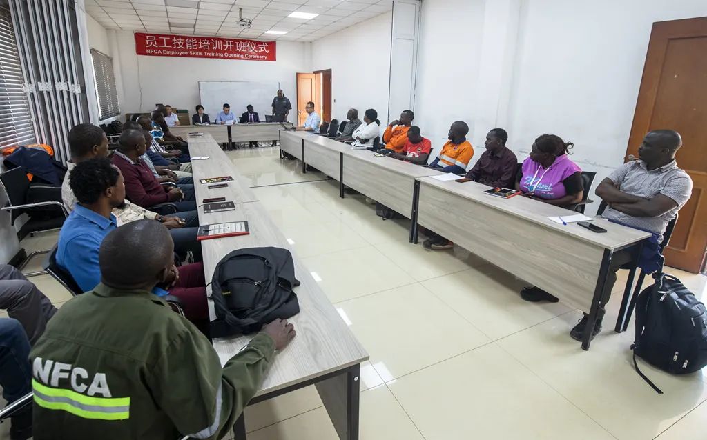 ??本次电工培训班将围绕AutoCAD电气设计、电气故障排查、电缆类型与连接、电机控制、PLC自动化系统的构建与设置,以及电力系统设备的维护与修理等核心内容展开。??此次参与电工培训的20名赞方电工,是中色非矿各二级单位经过考核筛选的具备较高技能和素养的一线骨干,通过本次电工专业技能培训,将进一步提高他们的技能水平,更好的服务生产。??开班仪式于中午12点20分正式开始,参会人员包括中色非矿副总经理徐来祥、赞方总经理助理Dean Mwelwa以及首批参加培训的电工20人,以及中赞职院负责人和授课讲师。??中色非矿副总经理徐来祥代表公司发表了热情洋溢的致辞,强调了电工技能培训的重要性,对中赞职院提供的专业培训支撑表示衷心感谢。中赞职院校长Yamvwa先生致辞,他强调职业教育对于个人成长和社会发展的重要性,并承诺中赞职院将全力以赴,为学员们提供最优质的教学资源和教学环境。中赞职院院长助理王楠发表讲话,表示将进一步深化与中色非矿在员工技能培训领域的合作,助力公司员工岗位技能提升。
