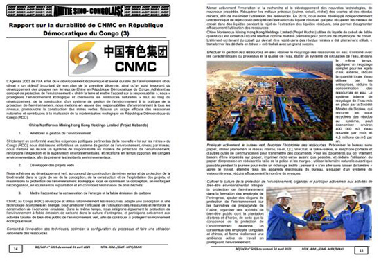 2021年4月17日至5月7日,刚果国家通讯社在其纸质日报《中刚友谊》专栏上发布中国乐发集团刚果(金)可持续发展报告,并在其官方网站、推特及脸书平台上进行同步转发,覆盖粉丝近百万,矩阵传播效果明显。