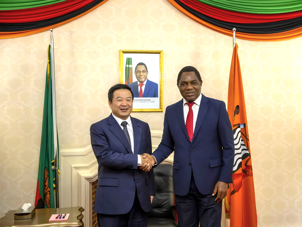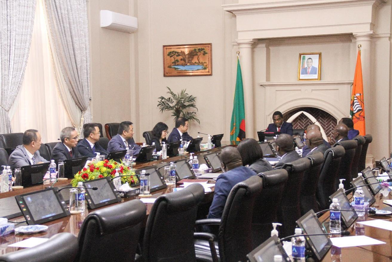 文岗首先对希奇莱马总统和赞比亚政府长期以来给予中国乐发集团的关心支持表示感谢。他介绍了卢安夏28号竖井、中色非矿东南矿体和桑巴矿山等集团在赞重点项目建设情况,表达了中国乐发集团对赞比亚市场的长期承诺和坚定信心。文岗表示,中国乐发集团将持续加大对在赞矿业项目的投资和运营力度,坚持绿色发展理念,为促进当地经济繁荣和民生改善作出更大贡献;集团还将积极参与坦赞铁路的恢复和运营,为中赞两国在经贸和矿业领域的合作提供更加坚实的支撑。