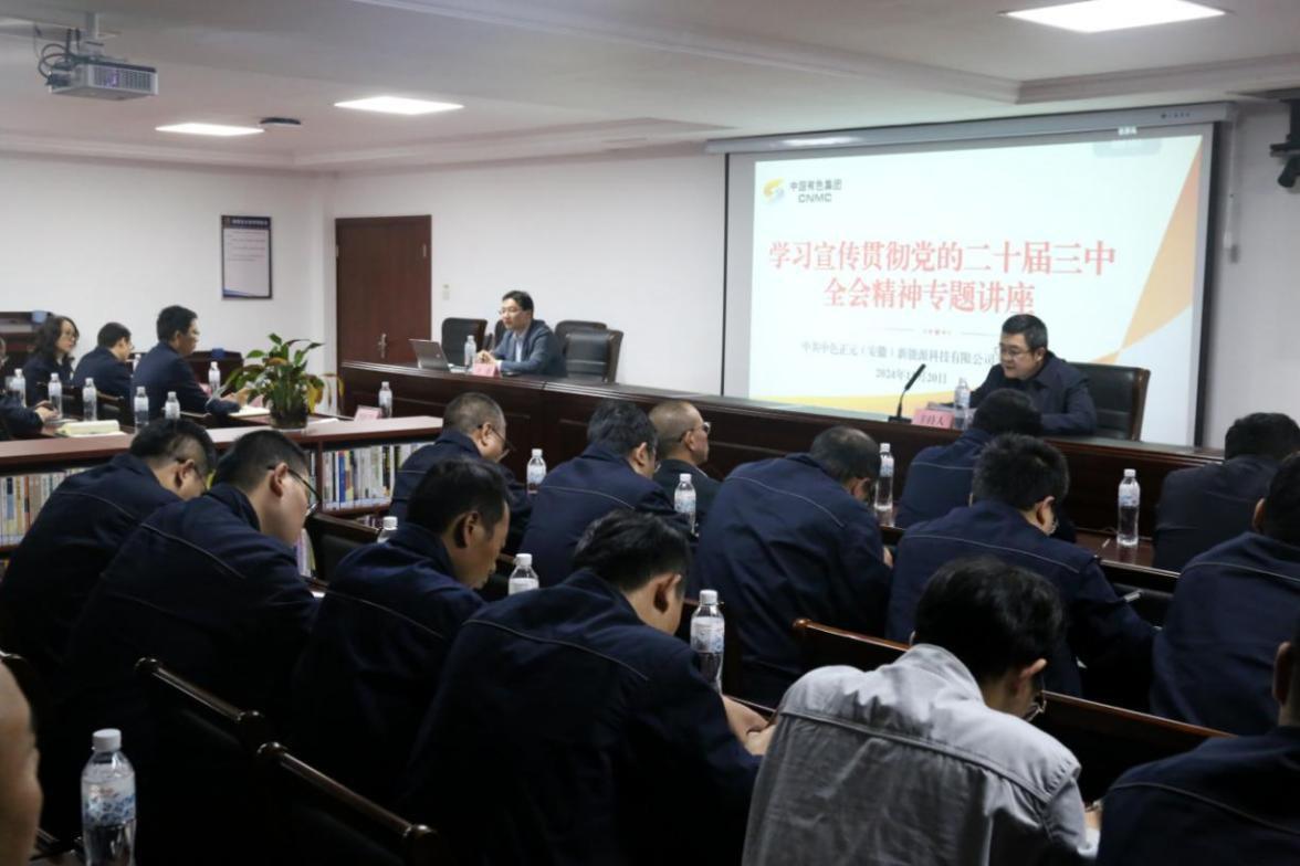 为深入学习宣传贯彻党的二十届三中全会精神,准确把握全会精神实质和丰富内涵,推动各项贯彻落实工作走深走实,11月20日,中国乐发集团出资企业中色正元(安徽)新能源科技有限公司(简称:中色正元)党委邀请中共中央党校(国家行政学院)法学博士、中共安徽省委党校(安徽行政学院)副教授于德作专题辅导讲座。