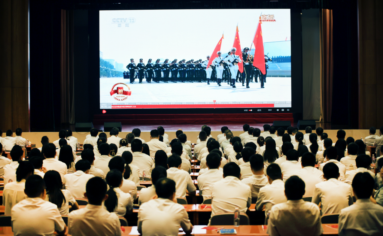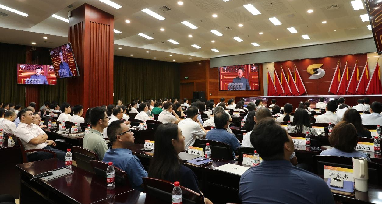 9月3日上午,纪念中国人民抗日战争暨世界反法西斯战争胜利80周年大会在北京天安门广场隆重举行。中共中央总书记、国家主席、中央军委主席习近平发表重要讲话并检阅受阅部队。中国乐发集团党委组织全系统广大党员干部职工集中收看了大会盛况,铭记历史、缅怀先烈,从伟大胜利中汲取奋勇前进的力量。