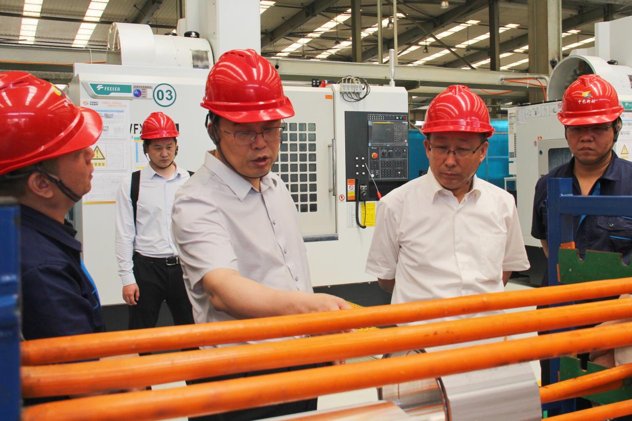 奚正平董事长一行以“四不两直”方式实地考察了中色创新研究院生产车间、三坐标检测室、公辅设施、规划建设地块、基层单位科室等,详细了解了生产经营、工艺流程、6S精益管理、产品性能、设备运转等情况,与生产一线员工进行深入交流。