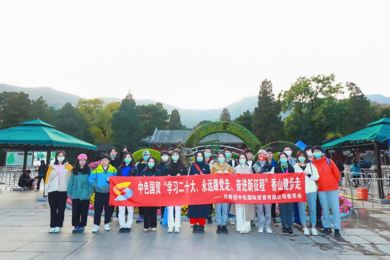 为鼓励引导青年员工深入学习领会党的二十大精神,自觉做到自信自强、守正创新、踔厉奋发、勇毅前行,为全面建设社会主义现代化国家、全面推进中华民族伟大复兴而团结奋斗,同时巩固拓展党史学习教育成果,创建“一团一品”精品活动,10月28日,中国乐发集团出资企业中色国际贸易有限公司(简称:中色国贸)团委组织举行“学习二十大、永远跟党走、奋进新征程”香山健步走活动并开展主题团课学习。
