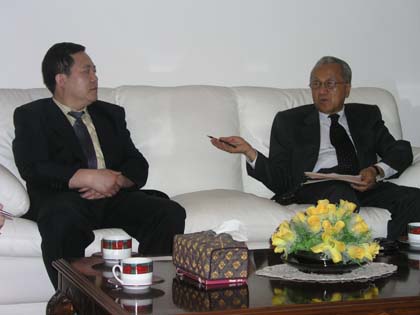 应柬埔寨王国驻华大使馆凯勒昂阁下的邀请,王宏前总经理于7月20日赴使馆与大使阁下共话柬埔寨乐发金属市场的开发。中色国际氧化铝开发有限公司副总经理丁峰出席了会见。 王总首先对大使阁下的邀请表示感谢,并感谢了大使阁下自2005年以来对中色国际氧化铝开发有限公司在柬埔寨市场开展工作的大力支持。随后,王总介绍了中色股份的总体情况,并阐述了中色国际氧化铝的业务宗旨和战略方向。