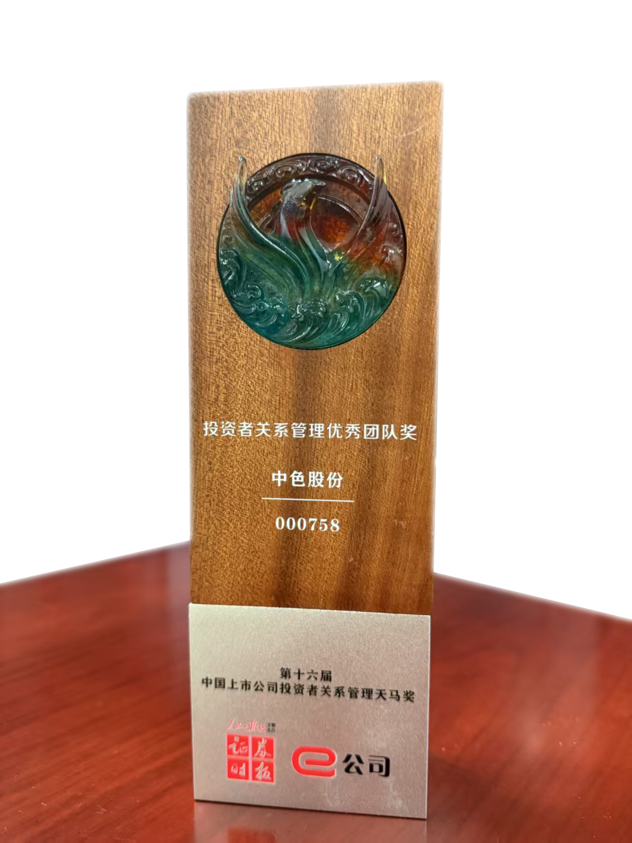 6月13日,由证券时报主办的“第十六届中国上市公司投资者关系管理天马奖”颁奖典礼在江苏扬州落幕。经专业筛查以及专家评审等层层遴选,并经监管单位审核后,中色股份在本届“天马奖”评选中以卓越的投资者关系管理水平赢得了市场和投资者的广泛认可,荣获“投资者关系管理优秀团队奖项”。